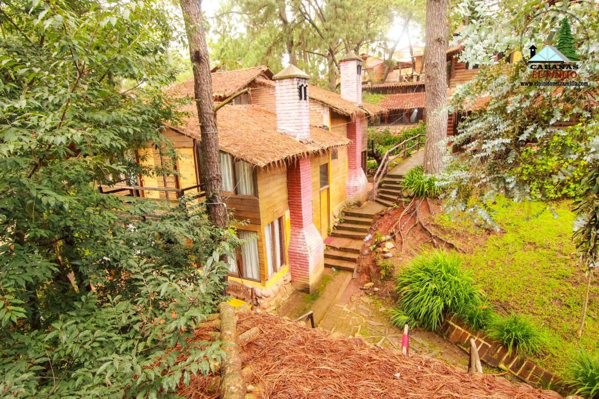 Cabañas de madera con techos rústicos y enclavadas en el bosque de Mazamitla, Jalisco.