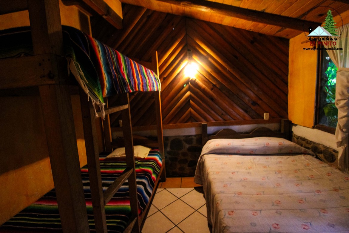 Cabaña de dos plantas, con tres habitaciones, para 6 - 8 personas *Cupo Mínimo: 4 personas pagando tarifa de 6 personas.