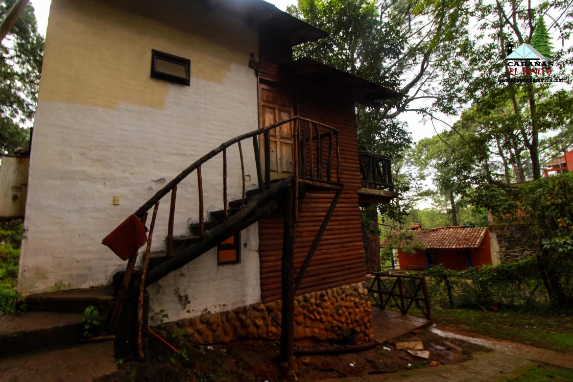 Cabañas de madera con techos rústicos y enclavadas en el bosque de Mazamitla, Jalisco.