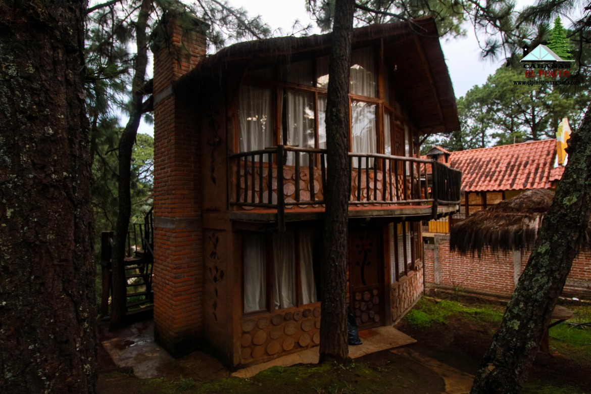 Cabañas de madera con techos rústicos y enclavadas en el bosque de Mazamitla, Jalisco.